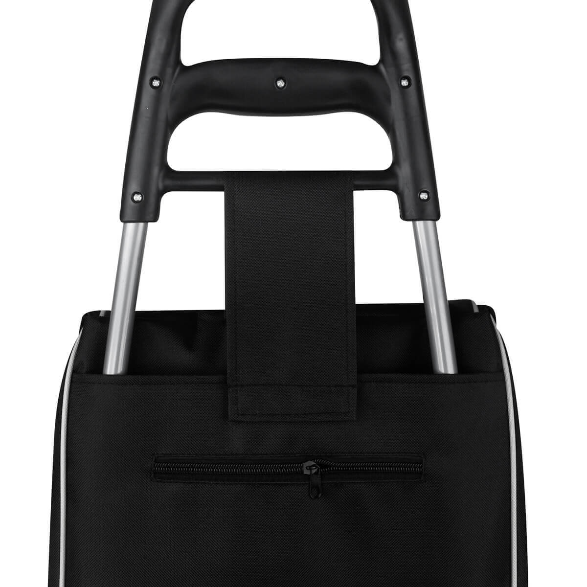 | Descripción | Bolsa para supermercado con jareta y solapa. Incluye bolsa posterior con cierre, estructura de metal, base para sostenerse, agarradera y llantas de plástico. Bolsa desmontable con velcro en la parte posterior. Ideal para las compras de fin de semana. |