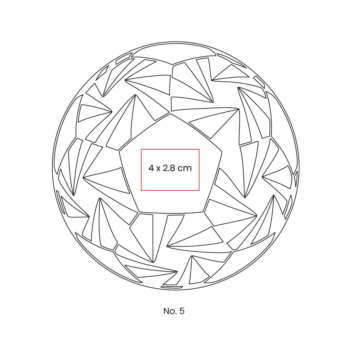 | Descripción | Balón de fútbol No. 5 con 35 gajos. Peso 400 gr. Cosido a máquina. Nivel máximo de presión 6-8 psi. Capa especial de PVC. |